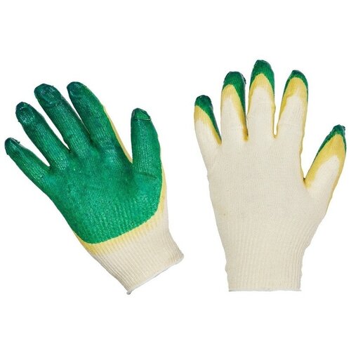 Перчатки защитные Комус трикотажные, с двойной латексной заливкой, 13 класс вязки, 10 пар (х/б)