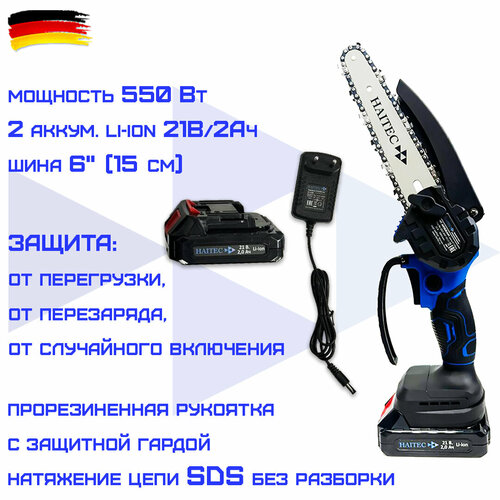 Аккумуляторная цепная пила HAITEC HT-AKS62Li 2 аккумулятора 2 Ач напряжение 21В
