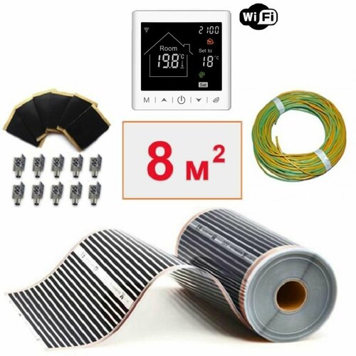 Пленочный электрический теплый пол под ламинат / линолеум / паркет 8м. кв. с умным wi-fi терморегулятором. Инфракрасная пленка 8 м2