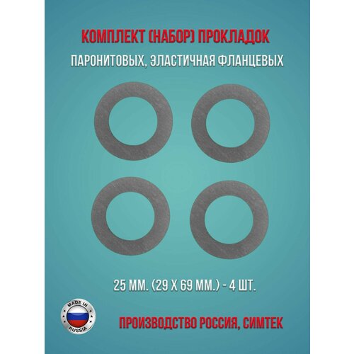 Комплект (набор) паронитовых, эластичная фланцевых прокладок в соответствии с ГОСТ 15180-86 диаметр 25 мм. (29 х 69 мм.), 4 штуки