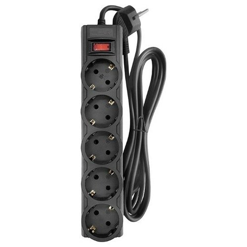 CBR Сетевой фильтр CSF 2505-1.8 Black CB, 5 евророзеток, длина кабеля 1,8 метра, цвет чёрный (коробка)