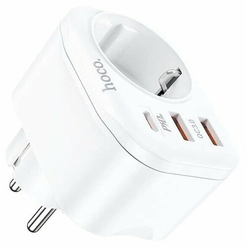 Сетевой фильтр Hoco NS3, 1 евро-розетка ~220В + 2-USB-3A, USB-C, 20W, PD, белый