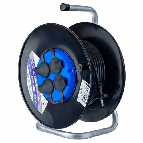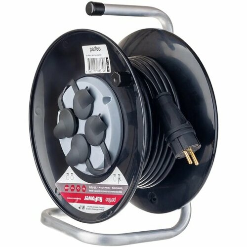 Удлинитель на катушке без заземления Perfeo RuPower 4 Sockets 20m Black PF_C3353