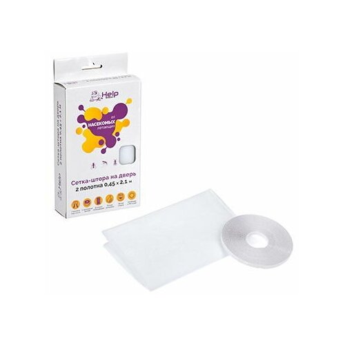 Противомоскитная сетка надежно защитит ваш дом от насекомых, а также послужит фильтром от попадания в помещение пыли и пуха. Размер сетки 45х210 см. Крепежная самоклеящаяся репейная лента длиной 5,6 м в упаковке нечувствительна к влаге и солнечным лучам. Полотна сетки-шторы "help" из плотного синтетического материала устойчивы к погодным условиям, резким перепадам температуры, повышенной влажности. Диаметр ячеек 2 мм пропускает свет и воздух, что весьма важно в условиях жаркой погоды в летний период. Конструкция сетки-шторы "help" проста в установке, легко собирается и разбирается, что обеспечивает возможность хранения и многолетнего использования. Подходит для любых типов дверей. Товар не подлежит обязательной сертификации.