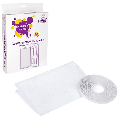 Цены на Сетка-штора, HELP, на дверь противомоскитная с крепежной лентой, 45х210см, 2шт белый в г. Уфа