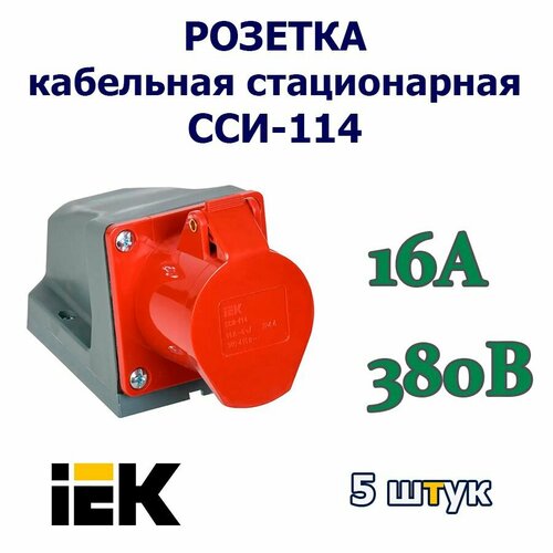 Розетка кабельная стационарная для открытой проводки IEK CCИ-114 16А, 380В, 3P+PE, IP 44, ГОСТ, 5 шт.