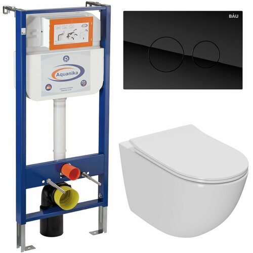 Комплект BAU 6 в 1: инсталляция BAU Aquanika, унитаз безободковый Bau Dream PRO-2, сиденье микролифт, круглая стеклянная черная клавиша