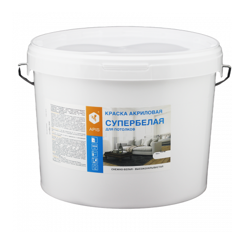 Краска акриловая APIS для потолков супербелая, ведро 15 кг