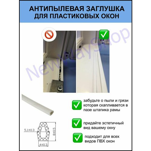 Уплотнитель антипылевой заглушка паза штапика для пластиковых окон и ПВХ дверей 5 метров