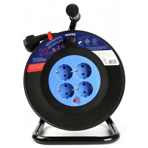 Удлинитель на катушке SmartBuy SBE-16-4-20-Z, 4 розетки, с/з, 16А / 3500 Вт 20 м 1.5 м² 4