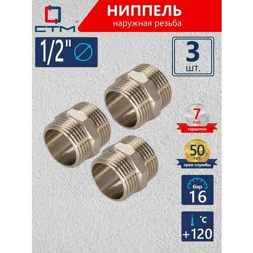 Ниппель 1/2 сантехнический для трубы наружная резьба CTM 3 шт