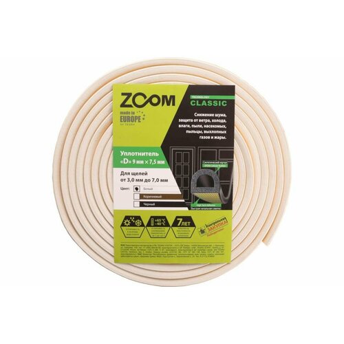 Самоклеящийся уплотнитель ZOOM Classic D (9х7.5 мм; белый; 10 м) 02-2-4-151