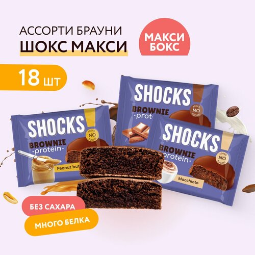 Протеиновое печенье без сахара Брауни SHOCKS Ассорти макси Fitnesshock, брауни без сахара, печенье без сахара, 50г 18 шт