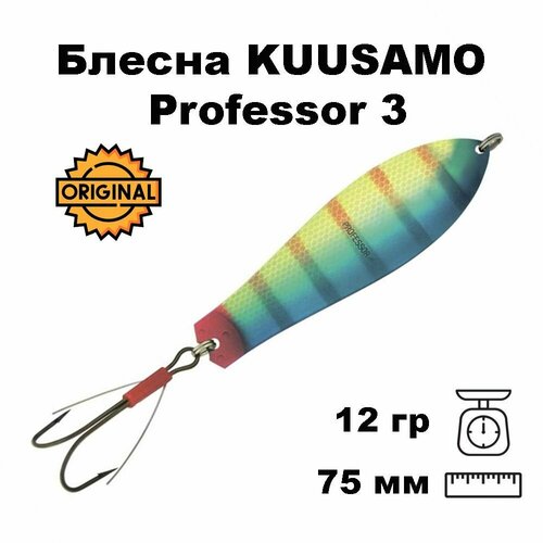 Блесна колеблющаяся (колебалка) Kuusamo Professor 3, 75мм, 12гр. незацепляйка BL/GR/FYe/FR-S