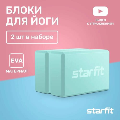 Блок для йоги STARFIT YB-200 EVA, 8 см, 115 гр, 22,5х15 см, мятный, 2 шт