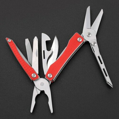 Многофункциональный компактный мультитул из нержавеющей стали совмещает в себе 11 функций в 1:узкие плоскогубцызахват для цилиндрических деталей с насечкойкусачки( для мягких металлов)надфильплоская отверткакрестовая отверткаоткрывалка для бутылокконсервный ножотверстие для ключейножницынож