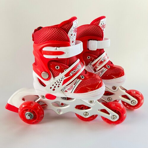 Роликовые коньки детские раздвижные размер 25-28 на стопу от 14-16 см светящееся колесо красные