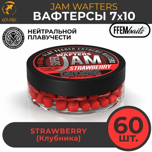 Вафтерсы FFEM JAM WAFTERS STRAWBERRY 7X10 мм клубника , банка 50 мл (60 штук) Бойлы насадочные нейтральной плавучести