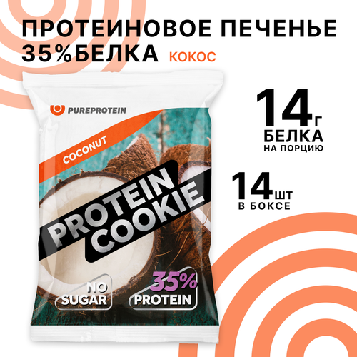 Печенье протеиновое PureProtein Кокос, без сахара, 14 шт по 40 г