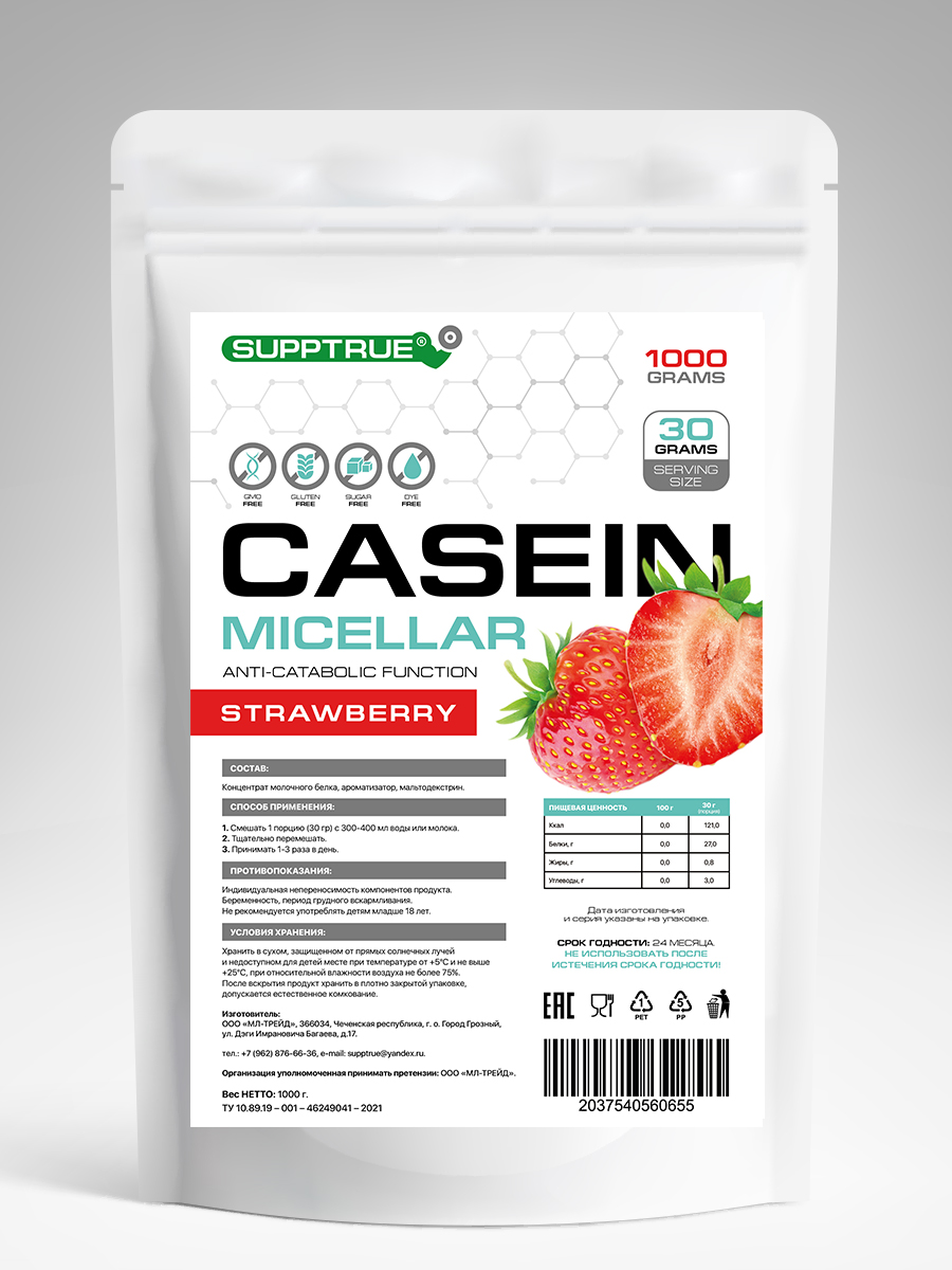 Протеин Supptrue казеиновый со вкусом Клубника 1000г Supptrue-Casein-1000g-Клубника