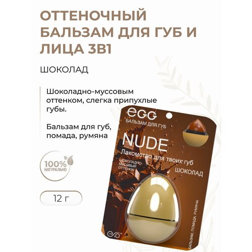 Бальзам для губ, помада, румяна Шоколад, шоколадно-муссовый оттенок, 12 г 4483358877
