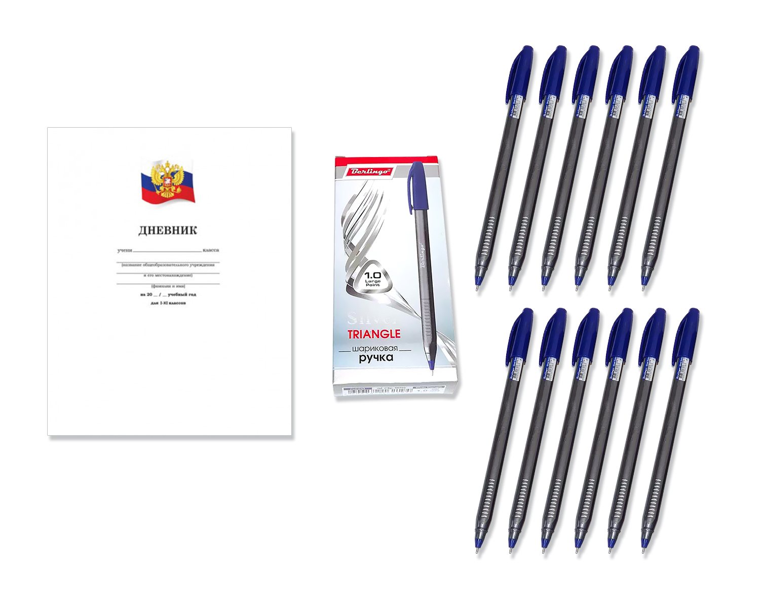 Набор первоклассника Berlingo ручки шариковые Triangle silver 12 шт, дневник школьный 600012649092