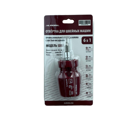 Отвёртка для швейной машины с 6 сменными насадками Aurora SDS
