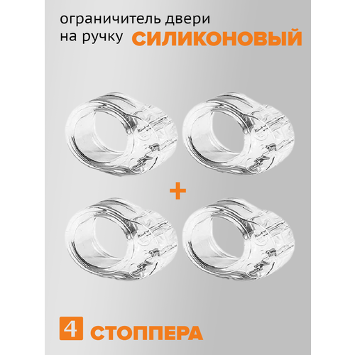 Дверной упор на ручку, Ограничитель двери силиконовый, Стоппер для ручки, прозрачный, овальный 4 шт.