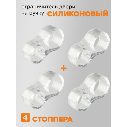 Дверной упор на ручку, Ограничитель двери силиконовый, Стоппер для ручки, прозрачный, двухразмерный 4 шт.
