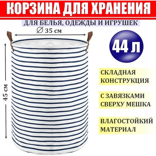 Органайзер 44л большая для хранения грязного белья, игрушек в ванну, гардеробную устойчивый, водонепроницаемый