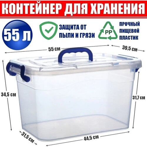 Ящик 55л для хранения вещей игрушек овощей пластиковый с крышкой на колёсиках, большой. Контейнер/Органайзер/Коробка