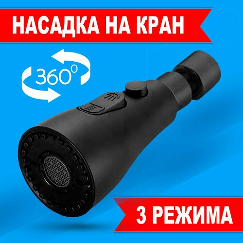 New-24 Аэратор "Top Grade-5 Premium" мощный (0,4 л/с) для смесителя на кран для кухни, ванной, поворотный, универсальный. Рассеиватель кухонный. Насадка водосберегающая для воды. Металл-пластик. чёрный.