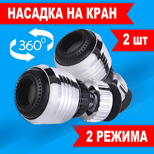 Прочный Аэратор "IKEA STYLE" для смесителя на кран для воды в кухне, ванной. Поворотный, универсальный. Рассеиватель (2 режима), насадка с защитной сеткой, в/категория, не из вторсырья. 2шт.