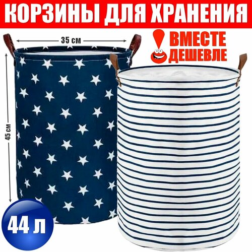 Корзина для хранения одежды, игрушек 44л - 2 шт. Мешок большой для хранения грязного белья, водонепроницаемый, с ручками и завязкой вверху
