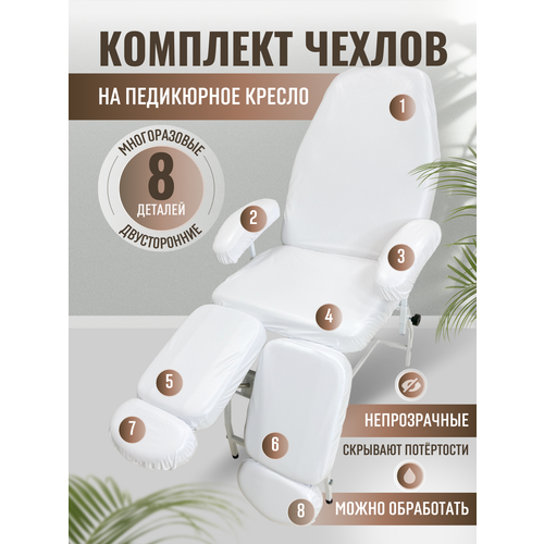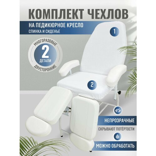 Able-table Комплект из 2 деталей белых чехлов на педикюрное кресло, махровые, непромокаемые, многоразовые, мулетон