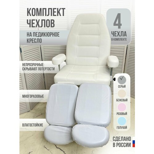 Комплект серых многоразовых чехлов для педикюрного кресла, 4шт