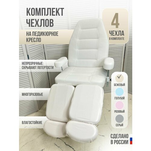 Комплект бежевых многоразовых чехлов для педикюрного кресла, 4шт