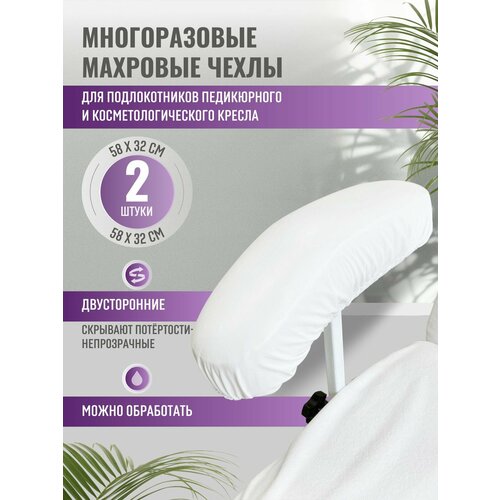 Многоразовые двусторонние белые чехлы для подлокотников педикюрного и косметологического кресла, 2 шт
