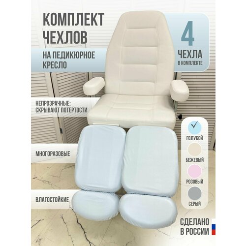 Комплект голубых многоразовых чехлов для педикюрного кресла, 4шт