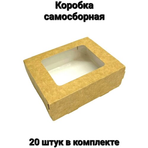 Коробка самосборная, с окном, крафт, бурая 17 х 8 х4см (5 шт)