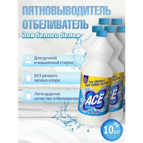 Отбеливатель и пятновыводитель ACE для белого белья Classic 1л 10шт