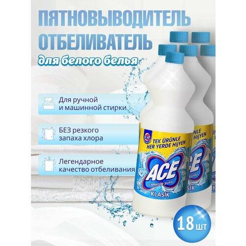 Отбеливатель и пятновыводитель ACE для белого белья Classic 1л 18шт