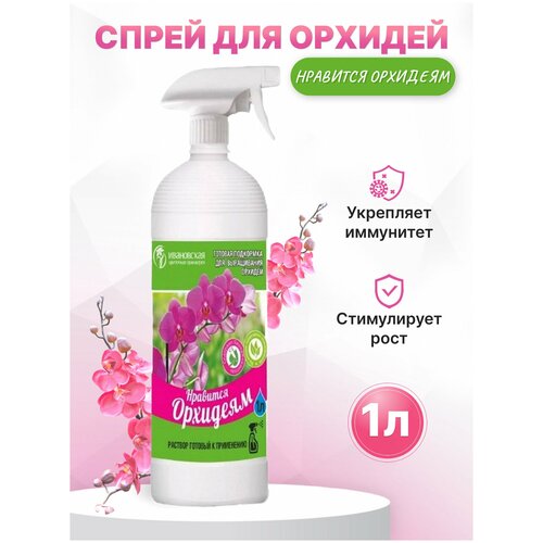 Спрей "Нравится Орхидеям" 1л, готовый питательный и увлажняющий раствор с янтарной кислотой, микроэлементами и хитозаном, для всех видов орхидей