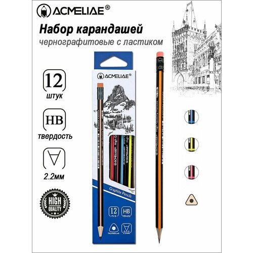 Карандаш чернографитный простой HB ACMELIAE, 12шт
