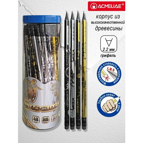 Карандаш чернографитный HB ACMELIAE, С ластиком