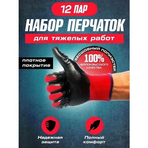 12 пар. Перчатки рабочие обливные размер L