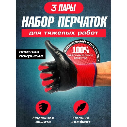 3 пары. Перчатки рабочие обливные размер XL