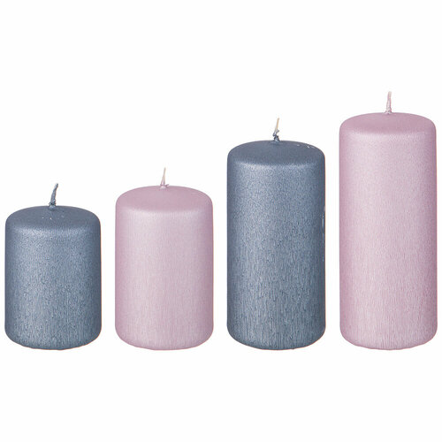 Набор свечей из 4 шт 7/8/10/12х5 см серый и розовый Adpal (182301)