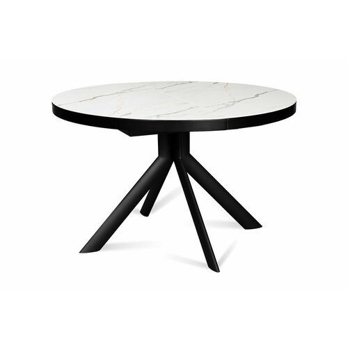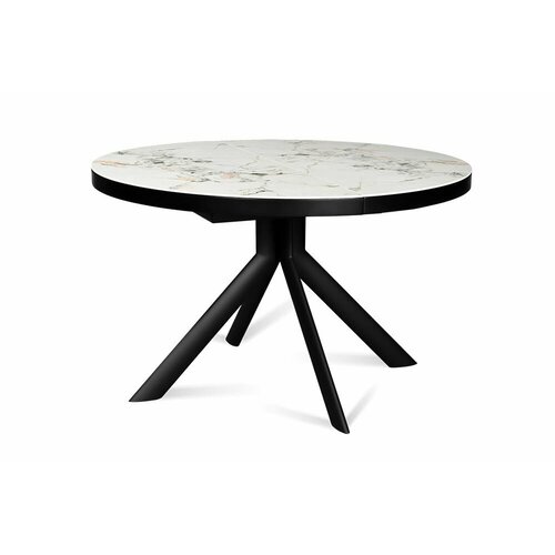 Стол обеденный керамический раздвижной ALFA 120 LUCKY CER на металлокаркасе, столешница керамика, 120(160)х120 см (белый нефрит глянец/черные ножки)