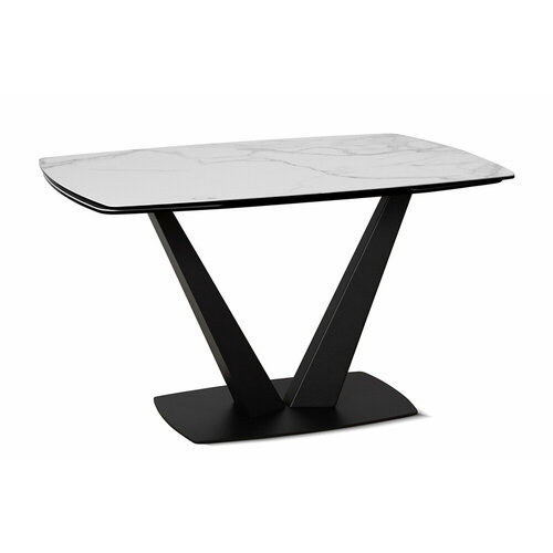 Стол обеденный керамический прямоугольный раздвижной на одной ноге CHALET 120 CARRARA CER на металлокаркасе, столешница керамика, цвет белый мрамор Каррара, черный каркас, 120(180)х85 см